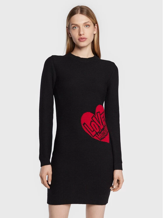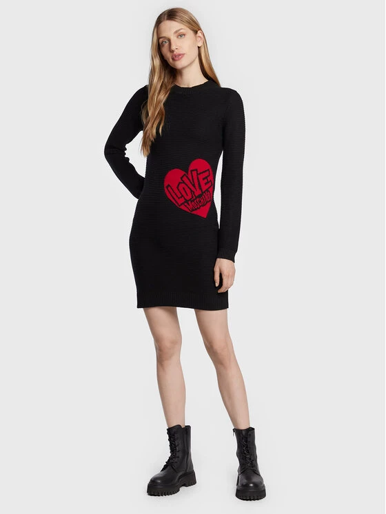 LOVE MOSCHINO Γυναίκες Πλεκτά Φορέματα Φόρεμα υφασμάτινο WSE0810X A125 Μαύρο Regular Fit Μαύρο