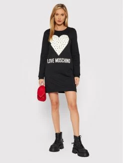 LOVE MOSCHINO Γυναίκες Πλεκτά Φορέματα Φόρεμα υφασμάτινο W584719E 2288 Μαύρο Regular Fit Μαύρο